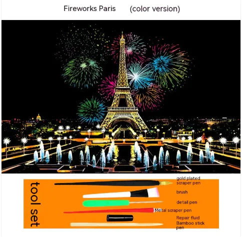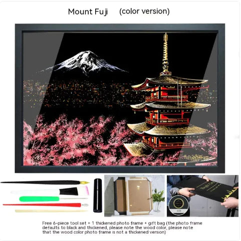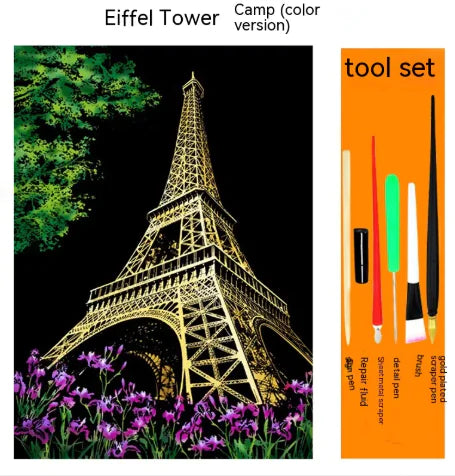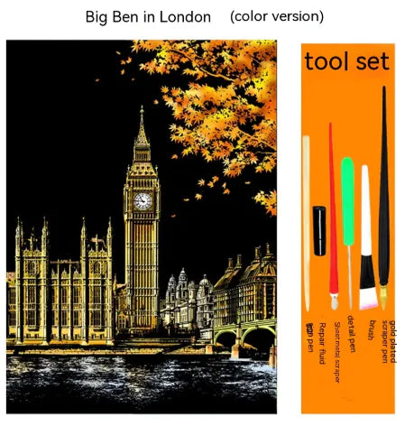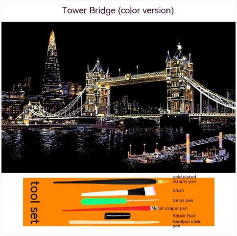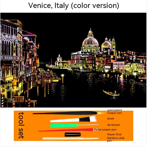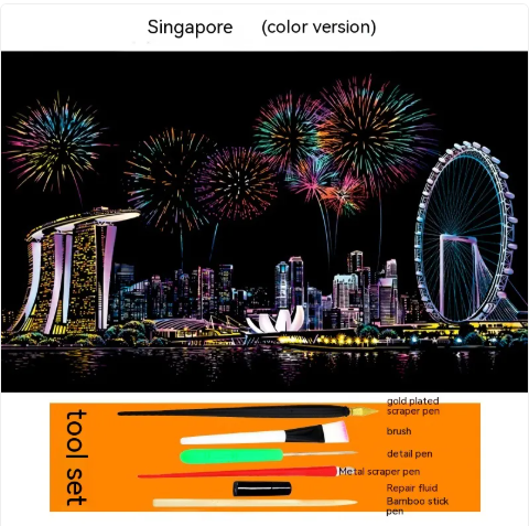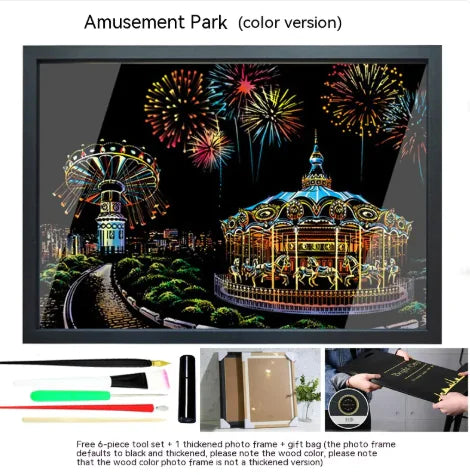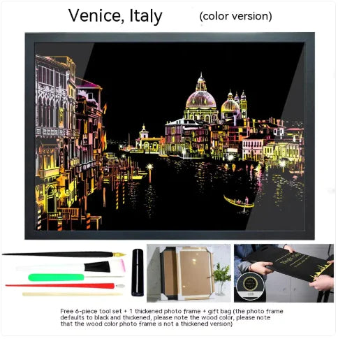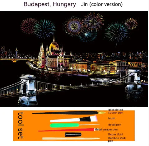 Colorful City Night Scratch Art is a creative and relaxing activity that allows you to reveal a vibrant cityscape by scratching away the dark coating. The result is a stunning, colorful night scene, perfect for art enthusiasts and those looking for a fun, stress-relieving project.